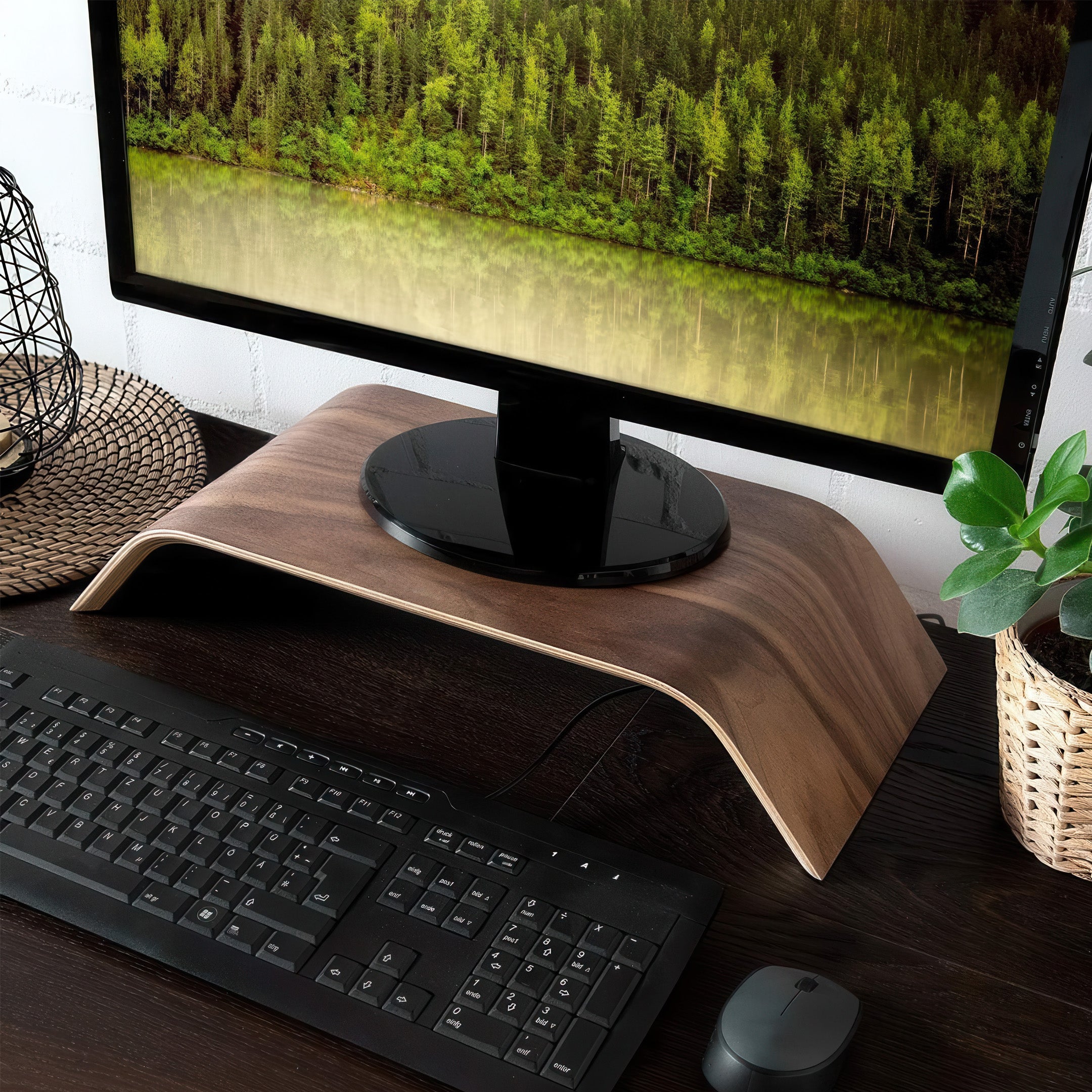 This monitor stand takes all the little problems with your setup and solves them in one move. It lifts your screen to a natural height so your neck and back feel better, while giving you extra space underneath to keep things neat. Built from solid walnut and birch veneer, it’s strong enough for heavy monitors yet sleek enough to look good in any room. This is the upgrade that makes working hours feel easier and your desk feel complete.